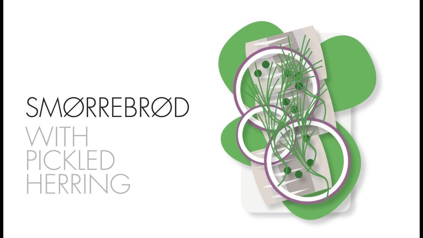 La receta con arenques en vinagre es una de las más clásicas de smørrebrød, a base de arenque, cebolla roja y alcaparras.