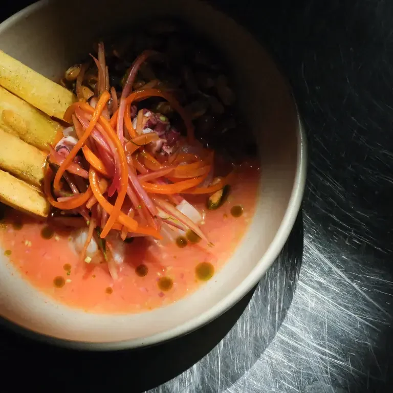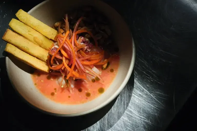 Bella y lúdica cevichería con acordes salseros en vinilo. Aflora la experiencia, el respeto al insumo, la representatividad peruana en todas sus gamas y una gracia que es un don inherente de su fineza.