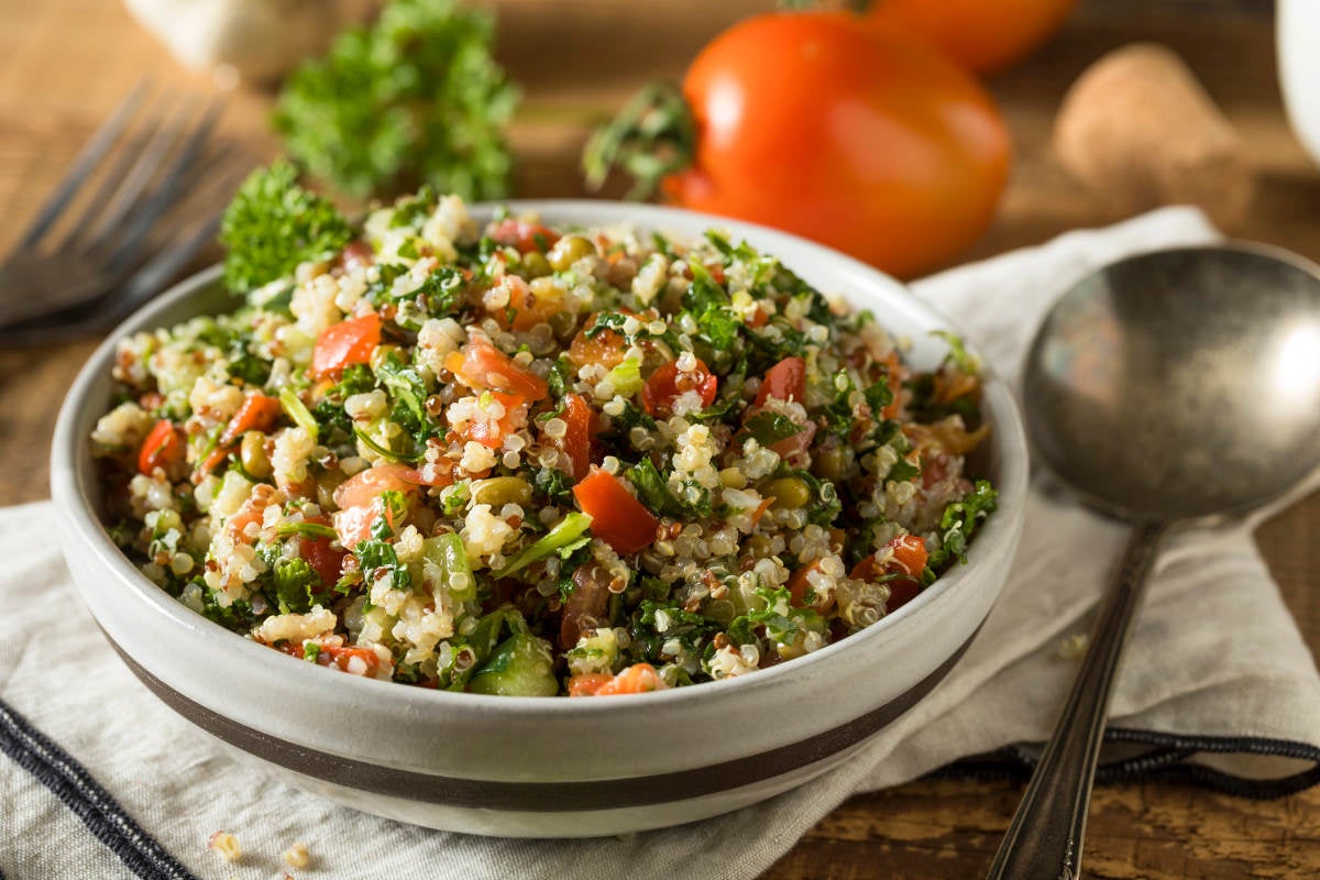La quinoa se considera un superalimento que, siendo mitad cereal mitad legumbre, aporta a cualquier plato innumerables propiedades. Para preparar esta ensalada, necesitarás pimiento rojo, calabacín, zanahoria y calabaza cortados en trozos, todos ingredientes que deberás colocar en una fuente y asar al horno con un chorrito de aceite de oliva y sal. La quinoa deberás prepararla aparte, hirviéndola en agua con sal aproximadamente 15 minutos. Cuando todos los ingredientes estén listos, solo tendrás que unirlos en un bol y agregar el tofu en cubos, condimentar con aceite, vinagre, sal y pimienta.