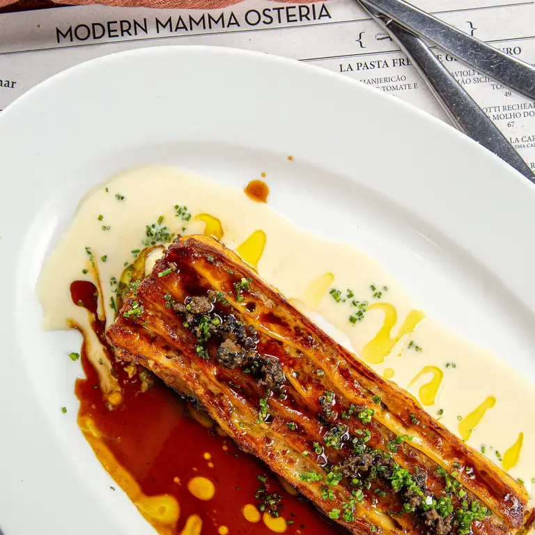 “Tuvo la idea de montar una lasaña alta rellena de ternera, cortar una lámina fina, dorarla por ambos lados en la sartén y servirla con dos salsas: una fonduta de queso y la propia demi-glace de la carne. Queda crujiente y jugosa al mismo tiempo, es buenísima”. Hoy se venden miles en el restaurante MoMa y la receta ha sido imitada en todo Brasil.