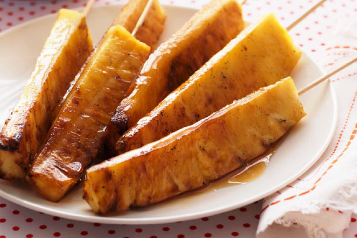 ¿Estás en busca de ideas originales para cocinar a la parrilla? Prueba esta receta de piña a la plancha para hacer brochetas de fruta flambeada en ron, un postre delicioso y ligero, perfecto para tomar con helado
