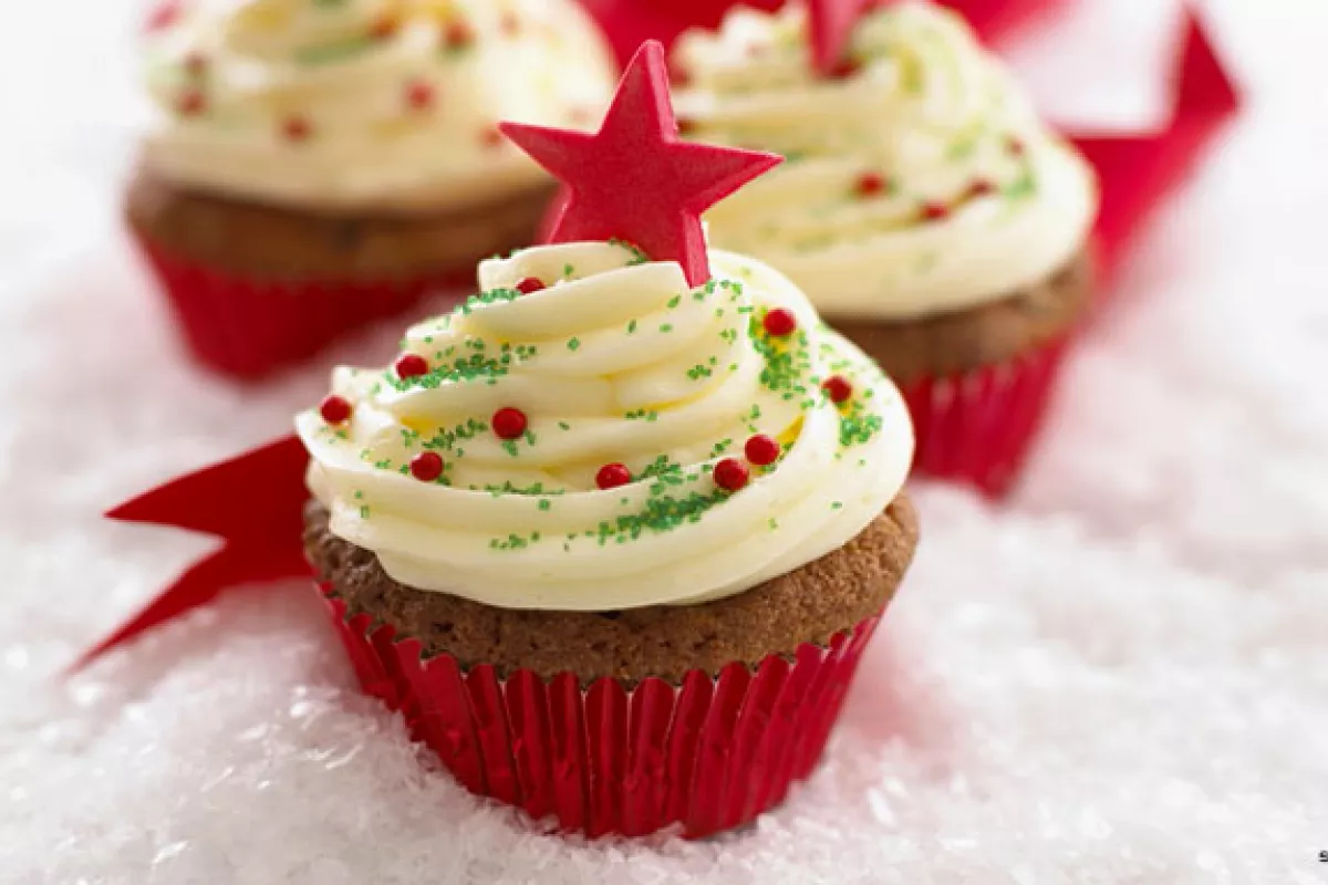 Si estás buscando nuevas recetas de postres para estas fiestas, no te pierdas estos simpáticos cupcakes navideños decorados con chocolate blanco y fideos de azúcar: ¡irresistibles!