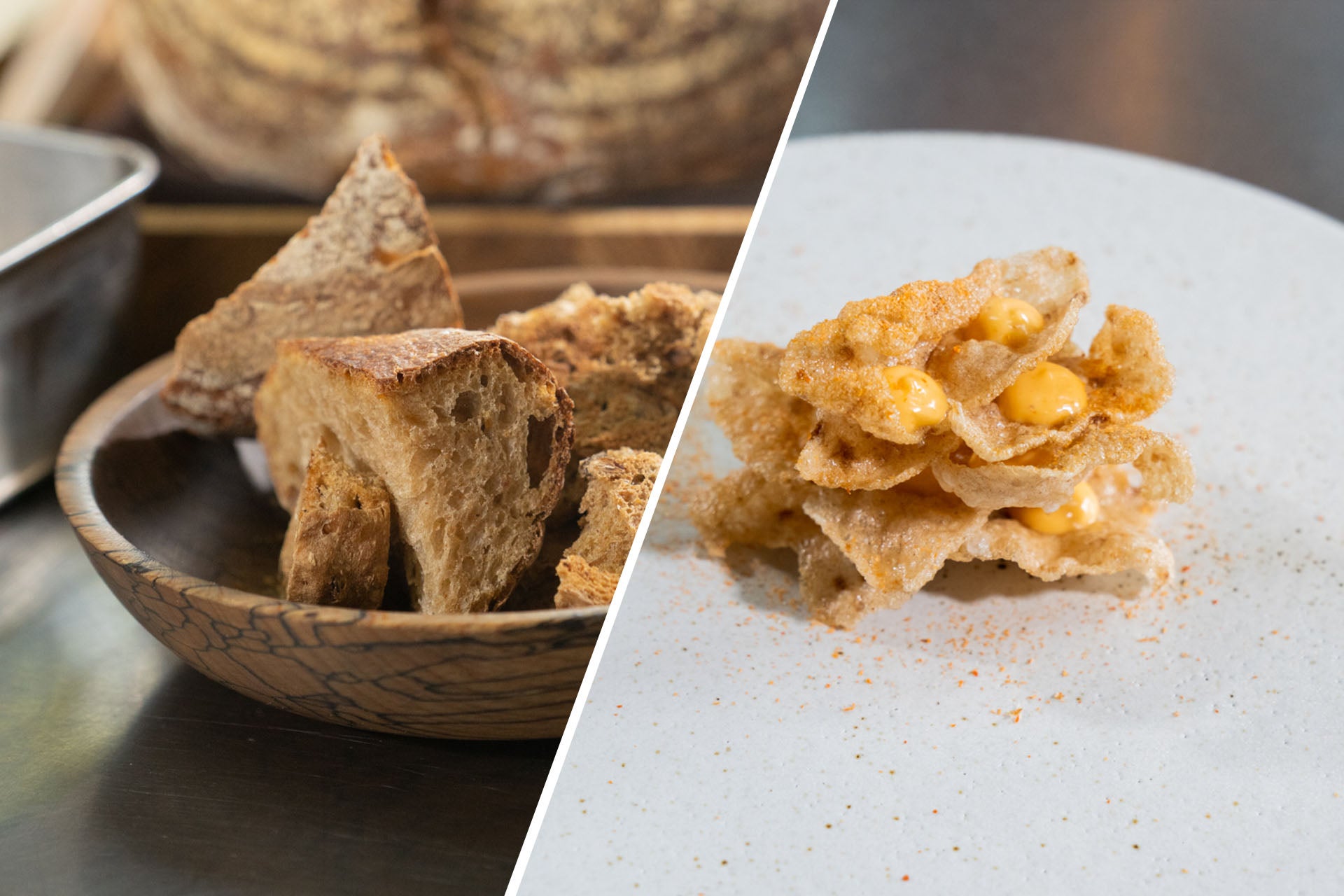 Esta receta es obra de Sat Bains, uno de los chefs más importantes del Reino Unido, famoso en todo el mundo por su enfoque de la buena mesa y su creatividad sin límites. "Cualquier ingrediente puede ser el protagonista de un plato", dice Bains. Aquí utiliza el pan duro con un toque elegante, a la altura de un restaurante con dos estrellas Michelin, como su Sat Bains with Rooms, en Nottingham.