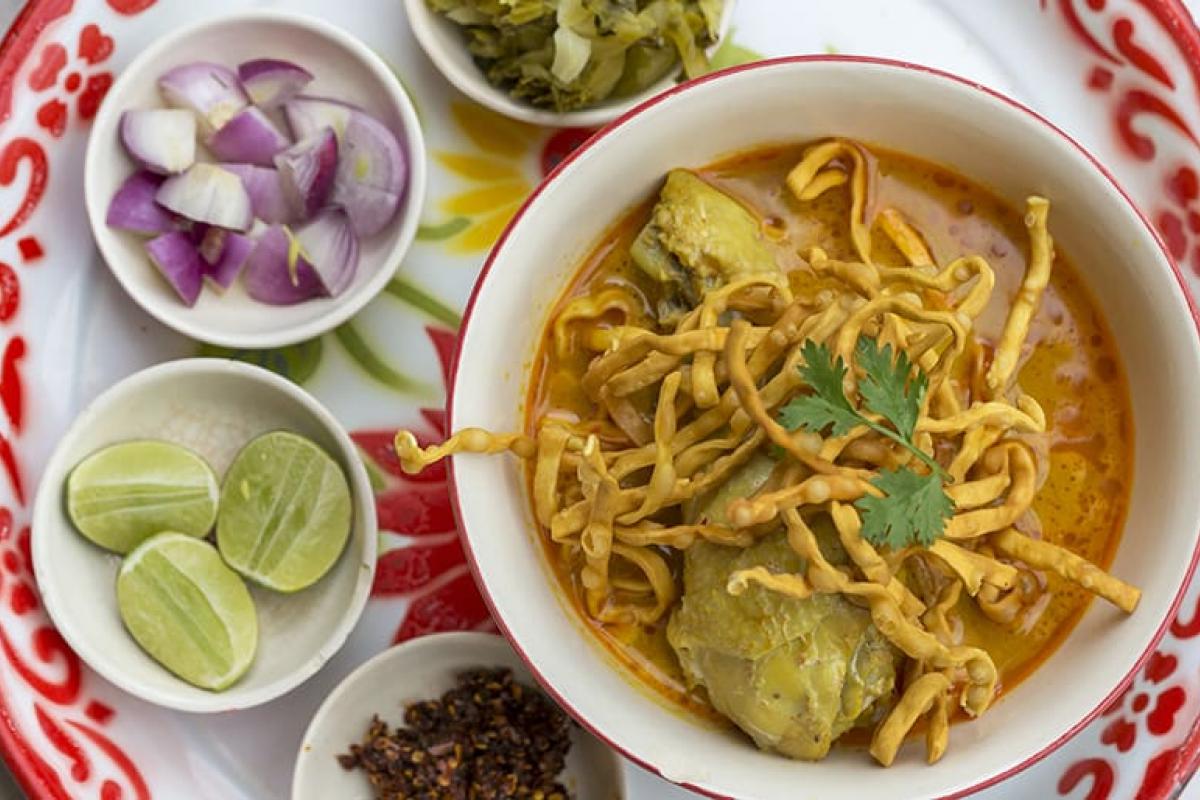 ¿Te gustaría aprender a hacer Khao Soi? Prueba esta receta para preparar esta popular sopa tailandesa de fideos crujientes al curry, hecha con pollo, leche de coco, especias y verduras.
