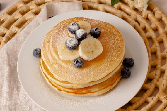 Hay muchísimas versiones de la receta de tortitas sin mantequilla, sólo hay que dejar que la creatividad fluya. Empieza añadiendo un poco de aceite a la cocción si te apetece. Usa un aceite de oliva que no sea virgen extra, ya que este último tiene un sabor más intenso y menos neutro.