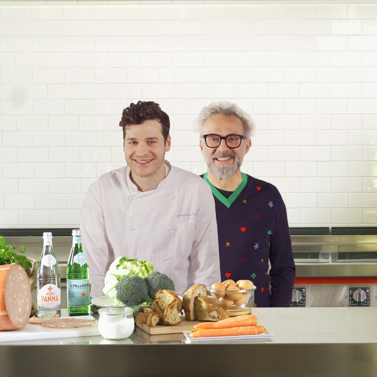 En este vídeo de Why Waste? para Fine Dining Lovers, el chef de Osteria Francescana va acompañado de Francesco Vincenzi, chef de Franceschetta58 en Módena. Él es quien nos ofrece dos recetas anti-desperdicio: el pastel de pan caramelizado y el pastel de maccarones.